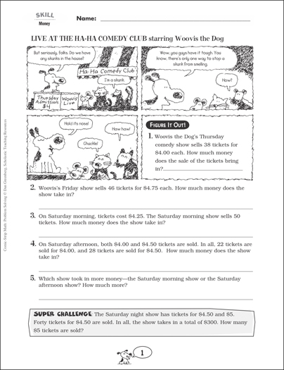 Live At The Ha Ha Comedy Club Money Printable Skills Sheets